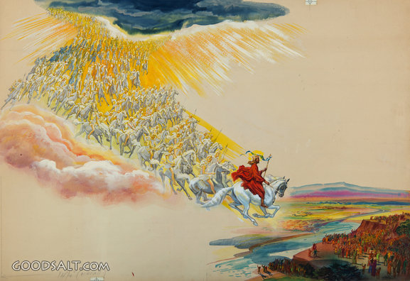 The Return of the King Revelation 22:7 Isaiah 25:9 salvation, christ, Jesus, galloping, white, looking, robe, coming, glory, revelation, faithful, horse, prophecy, up, red, clouds, horses, followers, rhpas0878 PROJECTION - License for PowerPoint™ PRINT – buy a print of this picture; optional frame Bible Hub |