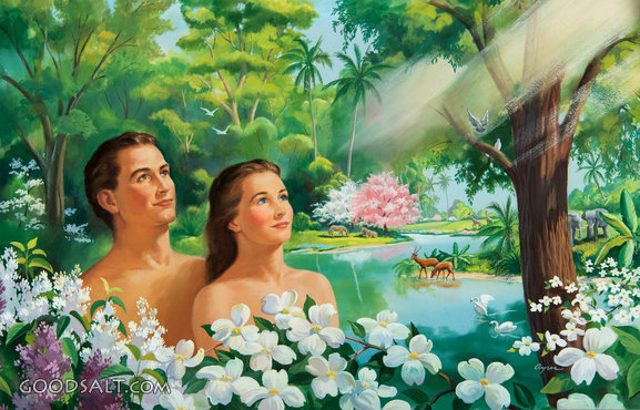 Adam and Eve in Eden Genesis 1:26-29 standing, creation, deer, drinking, adam, eve, beautiful, garden, of, eden, trees, flowers, and, in, adam and eve, garden of eden, robert ayres, schubbery PROJECTION - License for PowerPoint™ PRINT – buy a print of this picture; optional frame Bible Hub |