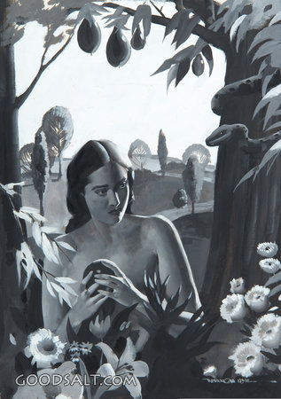 The Temptation of Eve in the Garden Genesis 3:1-3 temptation, holding, black, white, both, snake, eve, garden, of, serpent, fruit, eden, genesis, hands, and, holds, with, vernon nye, rhpas0901 PROJECTION - License for PowerPoint™ PRINT – buy a print of this picture; optional frame Bible Hub |