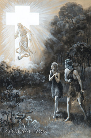 Promise of Salvation Genesis 3:15 temptation, salvation, leaving, Jesus, animal, head, promise, vision, crush, adam, eve, cross, garden, of, serpent, crushing, clothed, from, eden, genesis, skins, and, with, driven, t.k. martin, serpent's PROJECTION - License for PowerPoint™ PRINT – buy a print of this picture; optional frame Bible Hub |