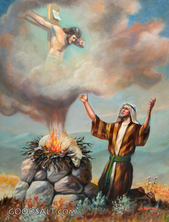 Promise of a Messiah Genesis 3:15 raised, christ, Jesus, heavenward, lamb, altar, sacrificial, abraham, revealed, cross, fire, sacrifice, easter, on, the, eyes, is, arms, and, in, harry baerg, rhpas0929 PROJECTION - License for PowerPoint™ PRINT – buy a print of this picture; optional frame Bible Hub |