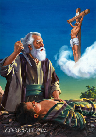 Abraham and Isaac - the Sacrifice Genesis 22:12-14 holding, sky, christ, Jesus, lying, overhead, above, knife, isaac, altar, abraham, cross, sacrifice, easter, genesis, on, is, in, russ harlan, iron beas, rhpas0933 PROJECTION - License for PowerPoint™ PRINT – buy a print of this picture; optional frame Bible Hub |