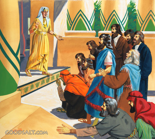 Joseph Pretends not to Know His Brothers When They Come to E Genesis 42:3-5 Genesis 42:3-8 bowing, meeting, royal, joseph, shock, amazement, headdress, palace, brothers, pillars, walls, reunited, eqypt, weath, rhpas0945, paintings PROJECTION - License for PowerPoint™ PRINT – buy a print of this picture; optional frame Bible Hub |