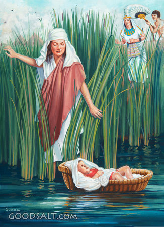 Baby Moses Found by Princess Exodus 2:1-10 pushing, miriam, bending, river, basket, headdress, moses, sleeping, princess, bulrushes, reeds, in, Finds, lester quade, handmaidens, aside, rhpas0951, slightly, nearby PROJECTION - License for PowerPoint™ PRINT – buy a print of this picture; optional frame Bible Hub |