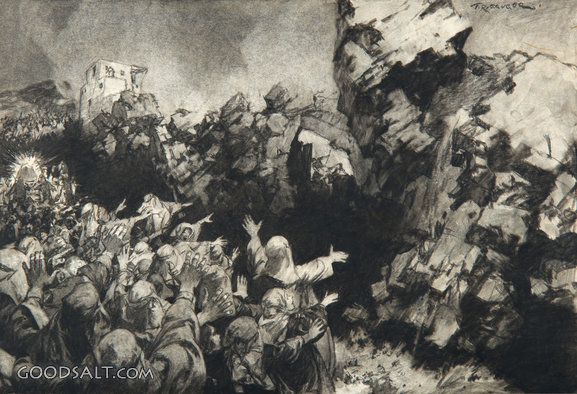 Jericho's Fall Joshua 6:3-4 point, pointing, down, people, picture, black, march, marching, white, shouting, shout, jericho, walls, tumbling, tumble, rhpas0990 PROJECTION - License for PowerPoint™ PRINT – buy a print of this picture; optional frame Bible Hub |
