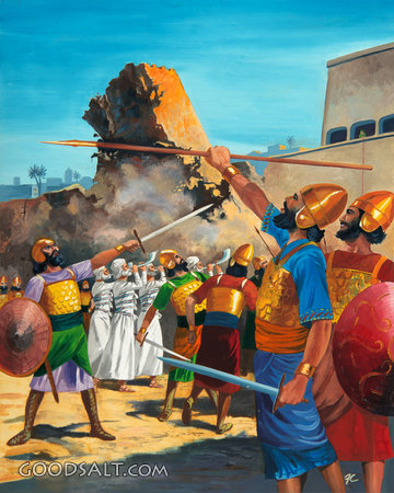 The Walls Came Tumbling Down Joshua 6:20 down, inside, blowing, going, jericho, soldiers, spears, priests, walls, horns, tumbling, tumble, sheaths, rhpas0993 PROJECTION - License for PowerPoint™ PRINT – buy a print of this picture; optional frame Bible Hub |