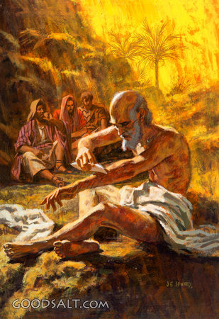 Job's Suffering and the Discouragement of Three Friends Job 2:6-9 rocky, suffering, ground, piece, job, glass, three, sitting, sit, patience, friends, boils, sores, scrape, cliffs, james e. steward, palm trees, rhpas0997, scrapping PROJECTION - License for PowerPoint™ PRINT – buy a print of this picture; optional frame Bible Hub |