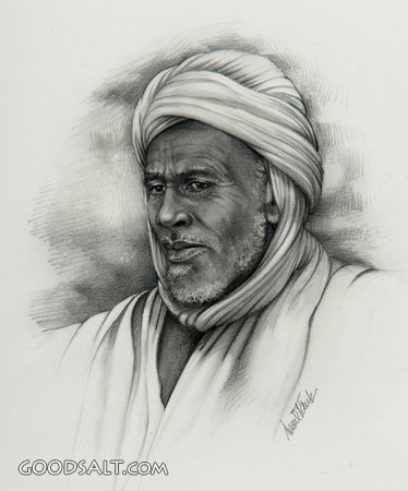 portrait, black, eastern, middle, east, white, calm, man, elderly, old, face, prophet, pensive, graphite, headscarf, rhpas1155