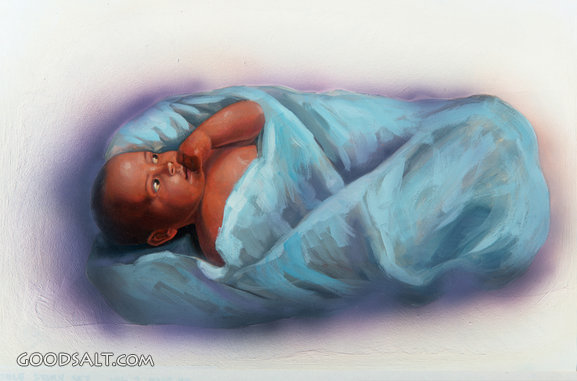 The Babe Luke 2:6-7 messiah, Jesus, wrapped, promise, john, baby, promised, baby jesus, christ and boy, colored pencil, handicap, rhpas0039, cerebral palsy, the chair, a lifetime of smoking, rhpas0040, oxygen tank, cough, coughing PROJECTION - License for PowerPoint™ PRINT – buy a print of this picture; optional frame Bible Hub |