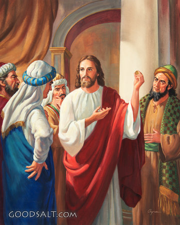To God What Is God's Mark 12:17 Jesus, tithe, discuss, temple, coin, tax, caesar, tax collector, bible readings, robert ayers, bsnt263tax001cra, k-1844, render unto caesar PROJECTION - License for PowerPoint™ PRINT – buy a print of this picture; optional frame Bible Hub |