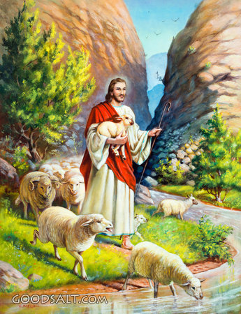 Jesus, shepherd, lamb, sheep, stream, herd, meadow, good shepherd, rhpas1683