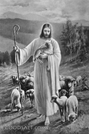 Jesus, shepherd, lamb, sheep, flock, herd, meadow, good shepherd, black & white, rhpas1684
