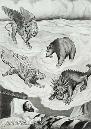 Daniel's Vision of the Four Beasts Daniel 7:2-8 bird, vision, lion, bear, four, daniel, prophecy, beast, leopard, wings, beasts, ribs, daniel 7, rhpas2755 PROJECTION - License for PowerPoint™ PRINT – buy a print of this picture; optional frame Bible Hub |