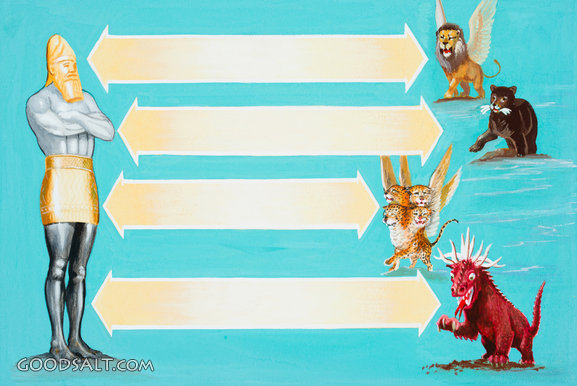 Connections between Prophecies in Daniel Daniel 2:28-31 bronze, iron, silver, statue, lion, bear, daniel, nebuchadnezzar, beast, gold, leopard, rhpas2799 PROJECTION - License for PowerPoint™ PRINT – buy a print of this picture; optional frame Bible Hub |