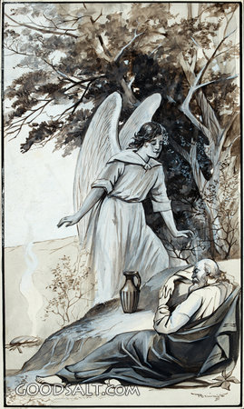 angel, help, asleep, persecution, drink, elijah, food, flee, prophet, jezebel