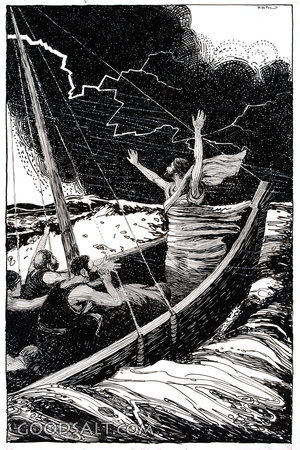 Jesus Calms the Storm Mark 4:37-41 Jesus, wind, calm, storm, lightning, boat, waves, clouds, disciples, black and white, jesus calms the storm, Calms, black & white, rhpas2894 PROJECTION - License for PowerPoint™ PRINT – buy a print of this picture; optional frame Bible Hub |