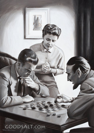 game, play, lose, devil, lucifer, satan, black and white, black & white, checkers, cornered, rhpas2977