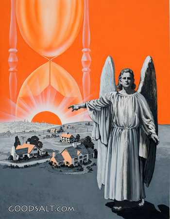 pointing, angel, orange, short, warning, hourglass, sunset, time, prophecy, end of days, end of time, ellapsing