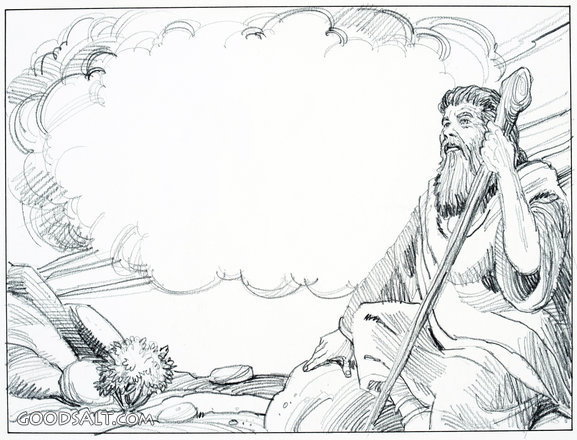 drawing, cloud, staff, ink, bush, black and white, the prophet, rhpas3142, moses and the bush