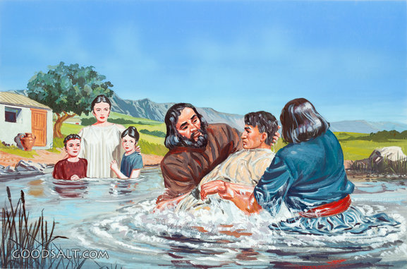 The Baptism Acts 16:33-34 baptize, water, pond, saved, baptizing, apostle, river, paul, family, jailer, silas, Philippi, the bible story, the baptism, rhpas3162, household PROJECTION - License for PowerPoint™ PRINT – buy a print of this picture; optional frame Bible Hub |