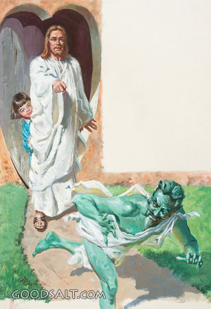 heart, Jesus, shaped, girl, child, fear, door, demon, little, vintage, love casts out fear, rhpas3177