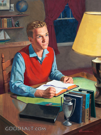 Study to Show Thyself Approved Unto God 2 Timothy 2:15 study, student, bible, caucasian, teen, man, desk, youth, college, americana, trophy, vintage, blonde, high school PROJECTION - License for PowerPoint™ PRINT – buy a print of this picture; optional frame Bible Hub |