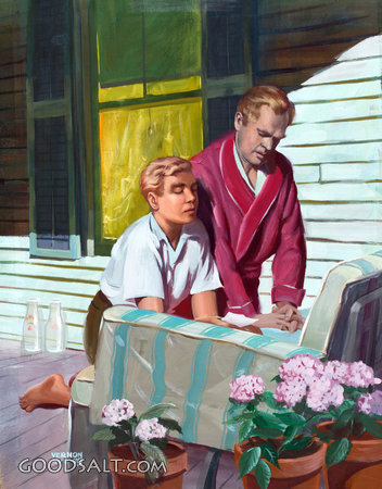sun, father, kneeling, porch, prayer, wisdom