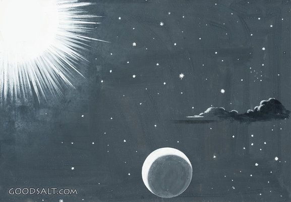 sun, creation, moon, space, stars, vintage