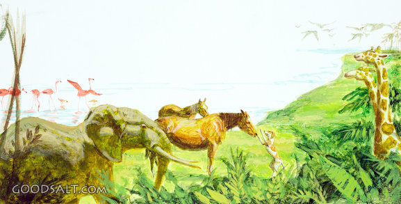 creation, horse, elephant, dog, giraffe, eden, animals, flamingos