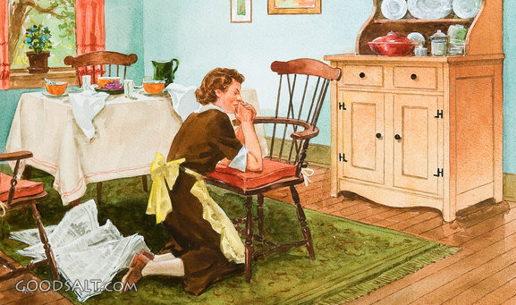 bad, woman, pray, prayer, mother, wife, newspaper, news, vintage