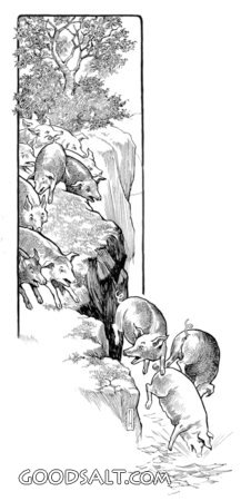 run, possession, cliff, possessed, swine, demon, drown, Demoniac, cast out, pigs, off