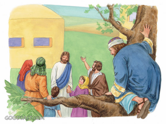 climb, Jesus, short, man, tree, sycamore, visit, zacchaeus