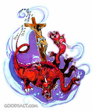 Jesus, child, dragon, satan, prophecy, cross, devour, swallow