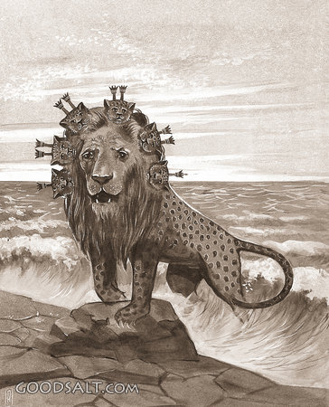 water, sea, lion, prophecy, beast, leopard, crowns, heads