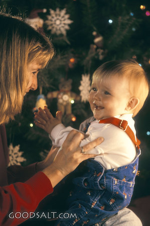 ornament, child, boy, baby, tree, smile, smiling, laughing, mother, parent, christmas
