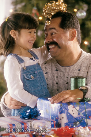 father, give, decoration, girl, gift, tree, giving, dad, daughter, parent, christmas, ribbon