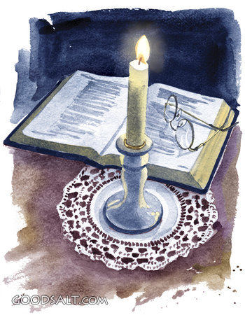 candlelight, study, candle, bible, book, glass, light