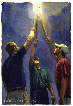 Unity Torches Matthew 5:16 3, people, raise, bond, man, men, brother, three, unite, unity, fire, one, friend, group, friendship, together, torches, synergy PROJECTION - License for PowerPoint™ PRINT – buy a print of this picture; optional frame Bible Hub |