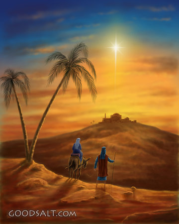 Mary and Joseph B Matthew 2:13 Matthew 2:14 Matthew 2:20 Matthew 2:21 Matthew 2:23 nativity, sunset, joseph, mary, star, golden, bethlehem, christmas, donkey, palm tree PROJECTION - License for PowerPoint™ PRINT – buy a print of this picture; optional frame Bible Hub |