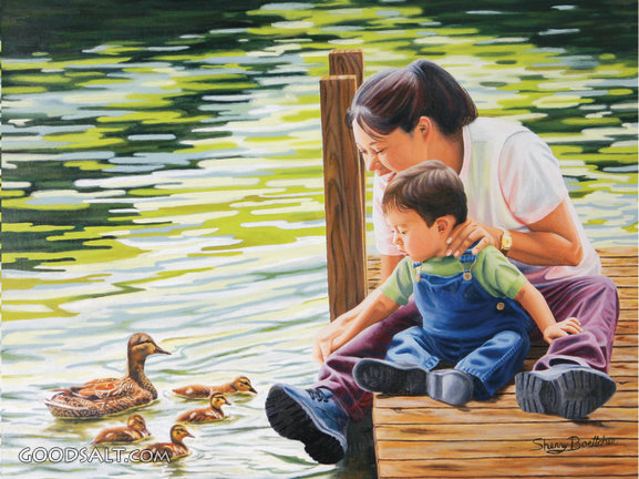 Precious Moments John 13:34-35 John 15:12 John 15:17 Romans 12:10 Romans 13:8 2 Corinthians 13:11 Ephesians 4:1-3 2 Thessalonians 3:11-13 Hebrews 10:24 1 Peter 4:8 1 John 3:11 1 John 4:7 1 John 4:12 Deuteronomy 6:4-7 Luke 6:38 Matthew 6:25-34 joyful, water, colorful, peaceful, happy family, happy time, nature - god's second book, realistic, mother with child, precious memories, childhood memories, baby ducks PROJECTION - License for PowerPoint™ PRINT – buy a print of this picture; optional frame Bible Hub |