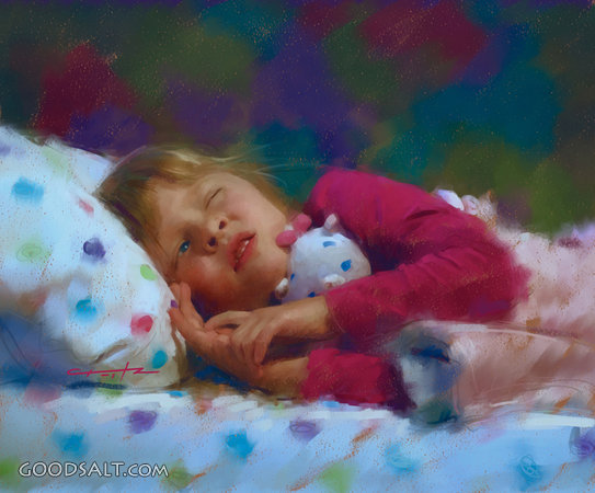 asleep, toy, pretending, awake, girl, bed, young, sleep, pretends
