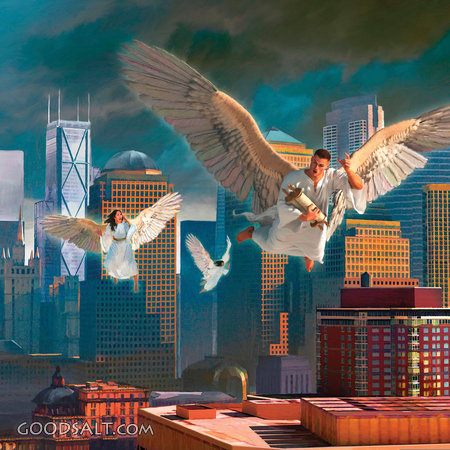 Three Angels Warning Revelation 14 city, warning, apocalypse, three, stormy, destruction, revelation, prophecy, doom, message, clouds, buildings, angels, prophecyart PROJECTION - License for PowerPoint™ PRINT – buy a print of this picture; optional frame Bible Hub |