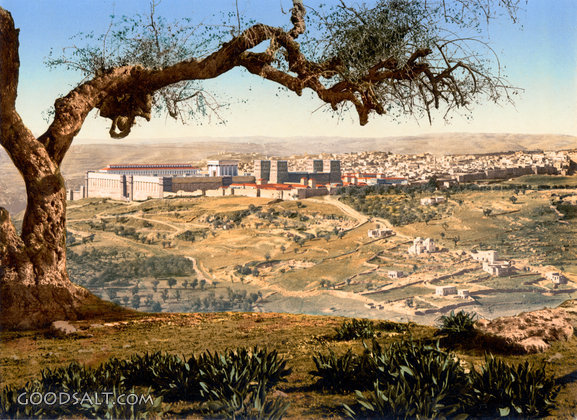 Jerualem Circa a.D. 30, From Mt. Scopus Matthew 24:1-3 Matthew 23:37 Mark 13:1-4 Luke 21:5-7 Matthew 24:1-3 Matthew 23:37 Luke 21:5-7 temple, jerusalem, sanctuary, mount, kidron, scopus, mt. PROJECTION - License for PowerPoint™ PRINT – buy a print of this picture; optional frame Bible Hub |