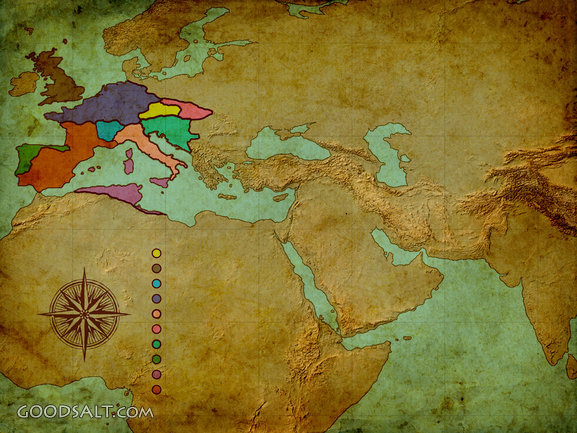 Western Rome Divided Map - No Text Daniel 2:41-43 Daniel 7:7-8 10, divided, rome, map, daniel, empire, tribes, division, allamani, alamanni, anglo-saxons, anglosaxons, burgundi, franks, lombards, ostrogoths, vandals, visigoths, suvi PROJECTION - License for PowerPoint™ PRINT – buy a print of this picture; optional frame Bible Hub |