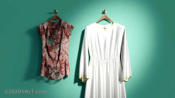 Robe of Righteousness Revelation 6:11 Isaiah 22:21 Job 29:14 Revelation 7:14 Revelation 7:9 Isaiah 1:18 Zechariah 3:3-4 Matthew 22:11 Luke 15:22 Isaiah 52:1 Isaiah 61:10 Ezekiel 36:25 Galatians 3:27-28 Psalm 32:1-2 torn, white, robe, filthy, righteousness, clean, shirt, rags, hanger PROJECTION - License for PowerPoint™ PRINT – buy a print of this picture; optional frame Bible Hub |