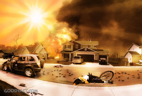 Last Plagues 4: Sun Scorch Revelation 16:8 sun, hot, heat, dead, bird, neighborhood, scorch, house, fire, plague, last Picture courtesy of GoodSalt.com