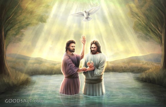Jesus's Baptism Matthew 3 Matthew 3:13-17 Mark 1:9-11 Luke 3:21-22 John 1:29-34 water, baptism, Jesus, dove, jordan, river, john the baptist, holy spirit, jesus christ PROJECTION - License for PowerPoint™ PRINT – buy a print of this picture; optional frame Bible Hub |