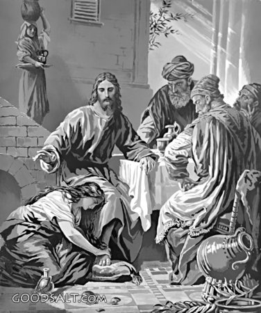 Mary Washes Jesus' Feet Matthew 26:6-13 Mark 14:3-9 John 12:1-8 Jesus, history, feet, mary, hair, prophecy, sin, anoint, discipleship, lazarus, ointment, perfume, martha, love, Bethany PROJECTION - License for PowerPoint™ PRINT – buy a print of this picture; optional frame Bible Hub |