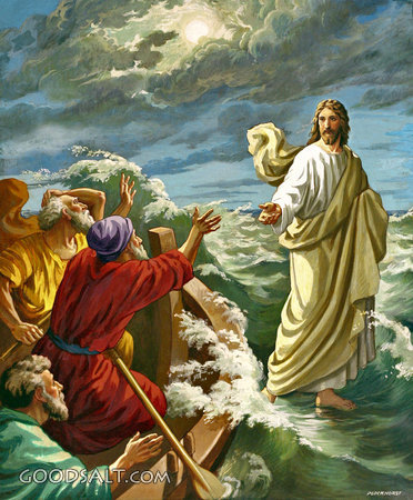 Christ Walking on the Water Matthew 14:22-27 Mark 6:45-52 John 6:16-21 walk, water, Jesus, wind, history, sea, peter, storm, boat, faith, sin, discipleship, waves, disciples PROJECTION - License for PowerPoint™ PRINT – buy a print of this picture; optional frame Bible Hub |