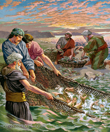 Peter Trusted Again and the Draught of Fishes John 21:1-14 risen, salvation, Jesus, peter, boat, faith, galilee, fish, fishing, resurrection, disciples, nets PROJECTION - License for PowerPoint™ PRINT – buy a print of this picture; optional frame Bible Hub |